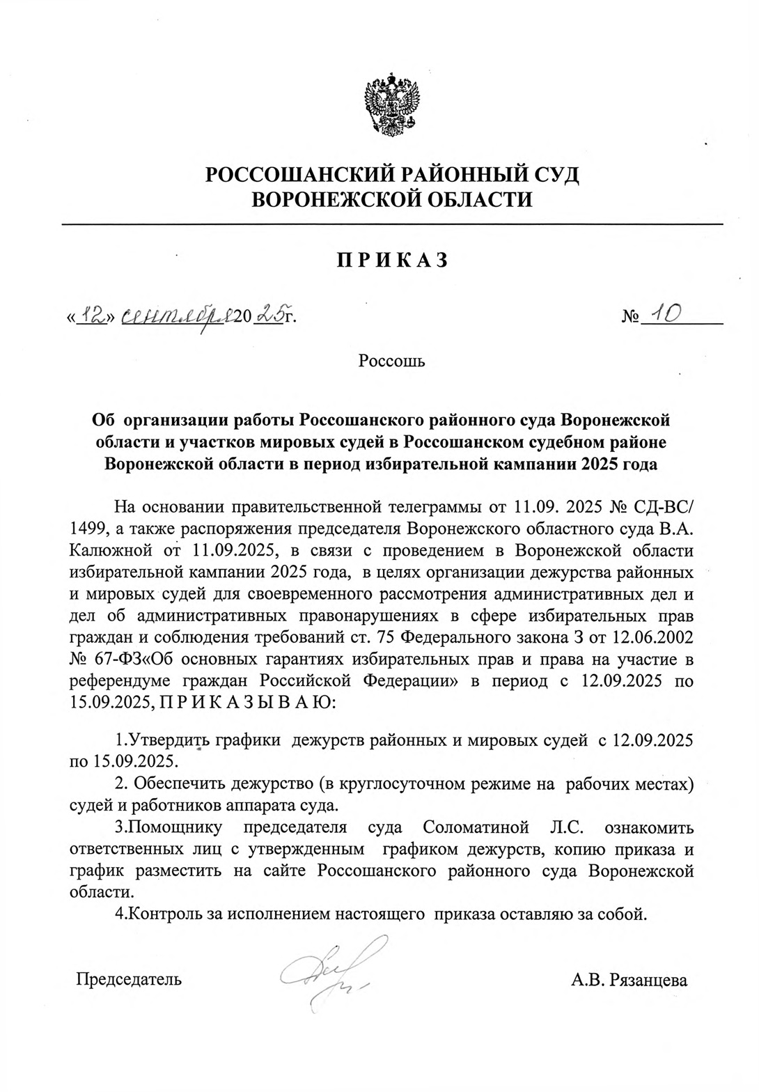| Приказ об организации работы суда в период избирательной кампании 2025 | версия для печати |